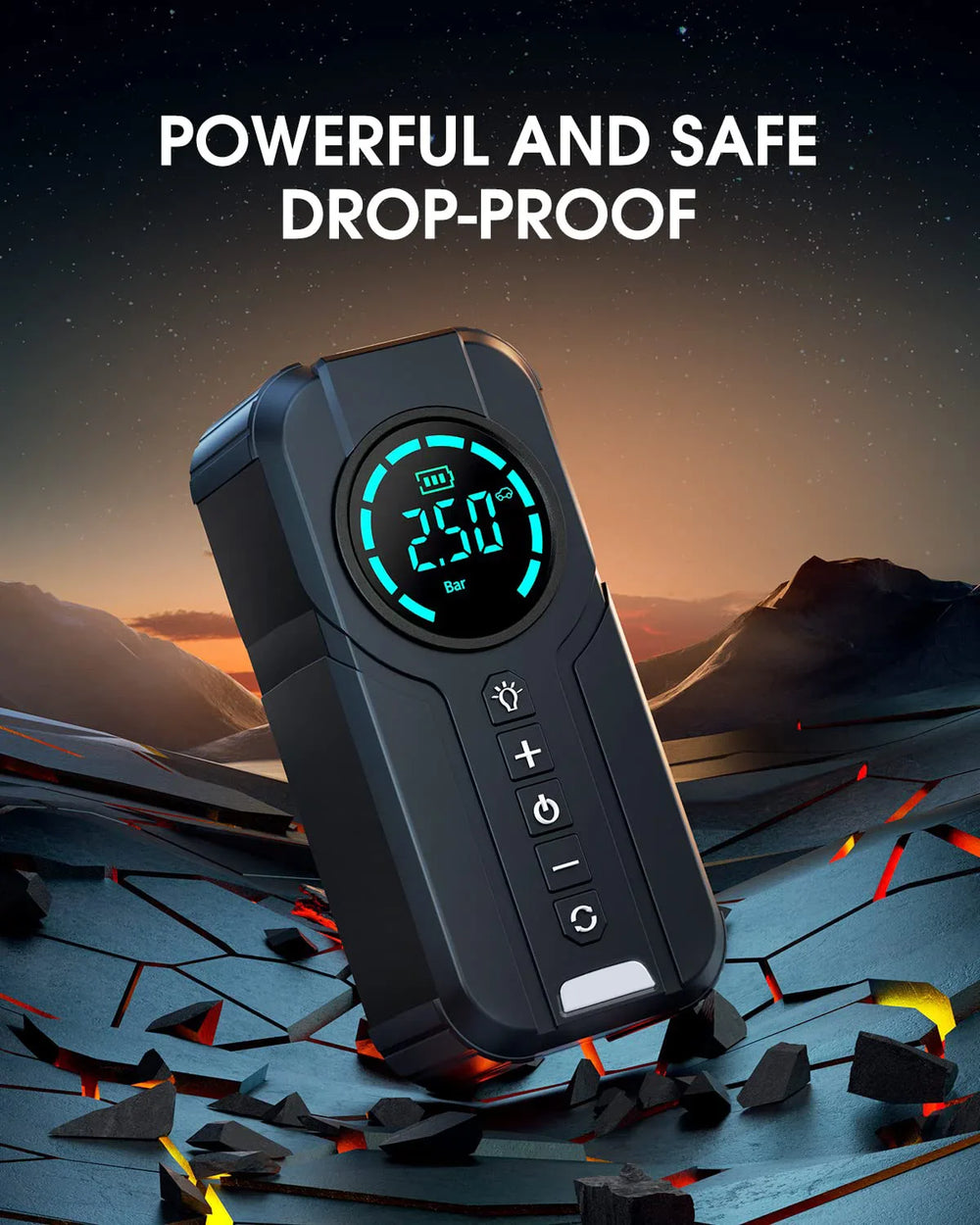 Potencia de Arranque: 2000A de pico, capaz de arrancar autos, camionetas y motos en segundos.